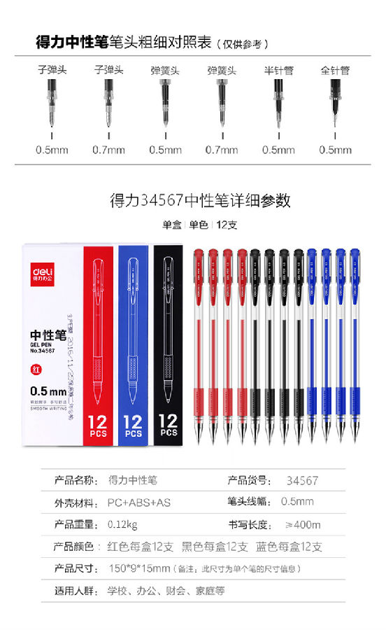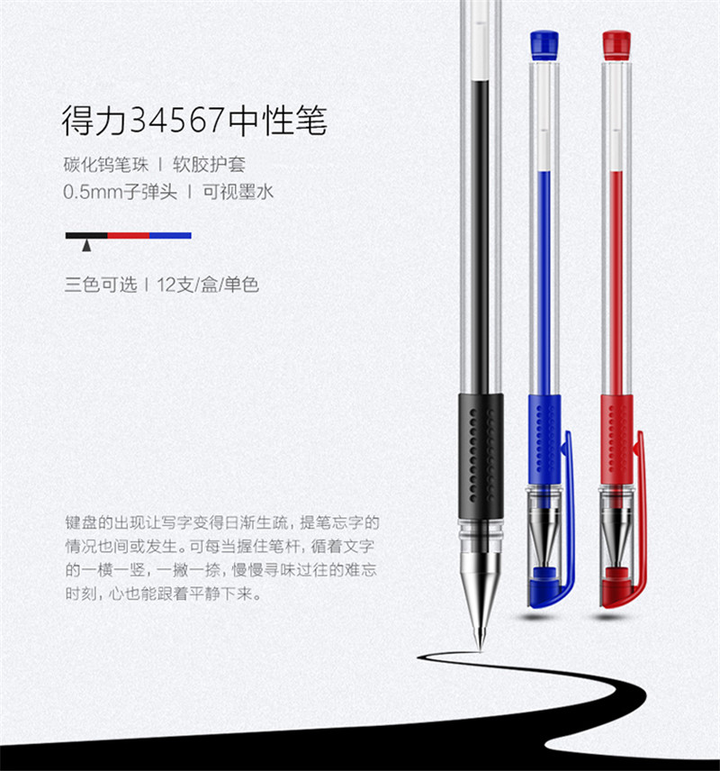 得力(deli)0.5mm辦公中性筆  :    12支/盒黑色34567